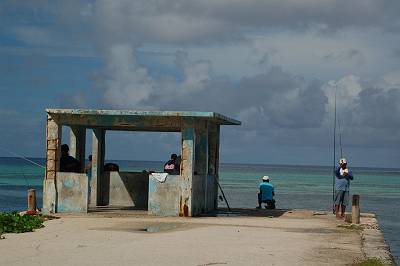 渡った先には釣りをする人達が・・・。 |