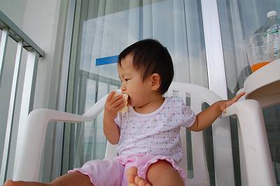 すぐさまかじりつくぽんたごん・・・。どこでも生きていけます、こやつは・・・。 |