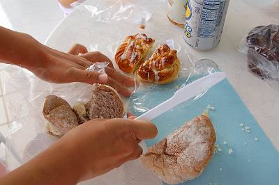 朝食はエビスヤで買っておいたパンです♪ |