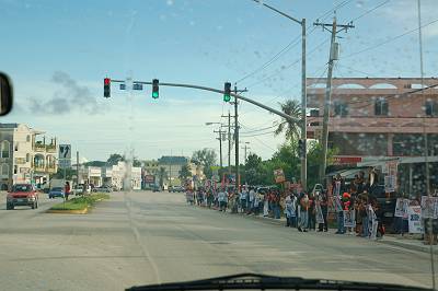 途中、大勢の人達が何かを掲げて立っていました。何でしょう・・・? |