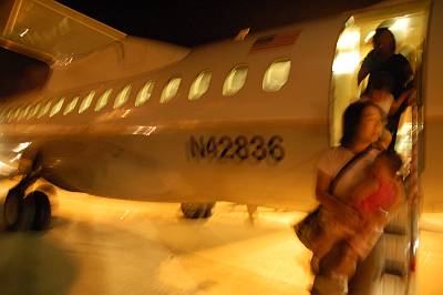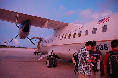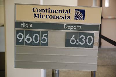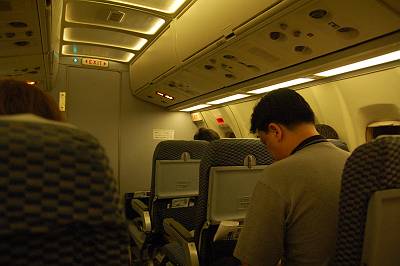 18:20、GUAM行きCO9605便に搭乗。 後部から搭乗して・・・ |
