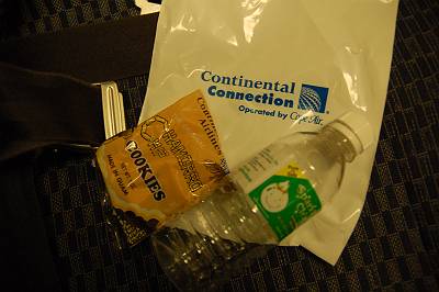 クッキーを食べて水を飲む♪ 50分の搭乗はあっという間です。 |