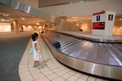 荷物の受け取り場があります。 ほかに到着機が無いのか、人はほとんどいませんでしたが・・・。^^; |