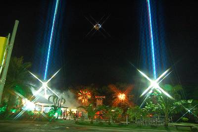すごいものを発見してしまいました。写真中央で光っている物体に人が乗っているらしく、上に下にと「ビヨ〜ン」と動いていました。これは怖い・・・。 |