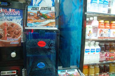 「ジャーキージャンクション」なるビーフジャーキーのボックスを発見。 肉を食べた後だったのでさすがに・・・。 |