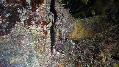 タンクをじっくりと観察していたところ、白い糸のようなものを発見。よくよく見てみるとオトヒメエビでした♪ |