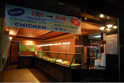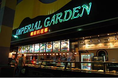 このフードコート、いろいろなジャンルのものが集まっています。 ここは韓国料理店。例によって2〜3点チョイスでいくら、といった感じです。 |