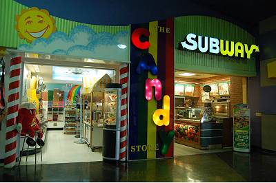 サブウェイもあります。隣はお菓子屋さん。「カラフル」なものがたくさん♪ |