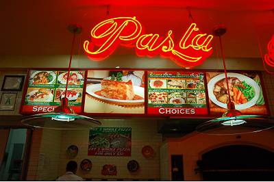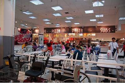 とても大きなフードコート。まだ11時なので、人もほとんどいない状態。 |