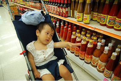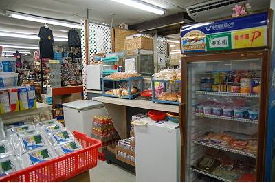 日本語の書かれた商品が山ほど・・・。パンやおにぎりも売っています。 |