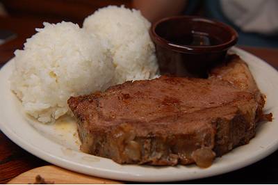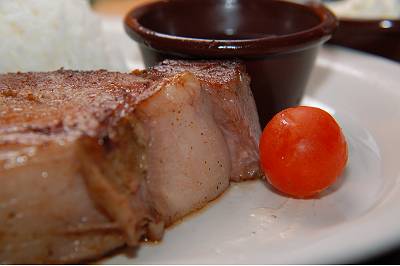 バーベキューのお店。肉と好きな野菜を選んでその場で焼いてくれるんです。ここのポイントは自分でタレを作れること。チャモロソースをベースに作るのがおススメです。 |