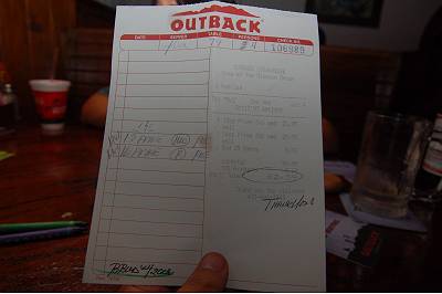 夕食はサルきちの強い希望で、昨日と同じステーキハウス・アウトバックへ。