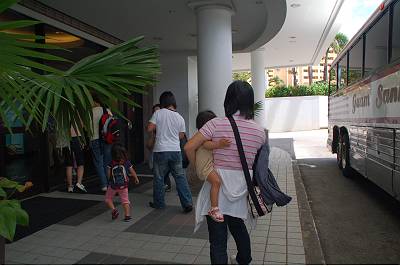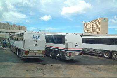 ホテルと送迎がセットになったプランを頼んでおいたので、迎えのツアーバスに乗車。 |