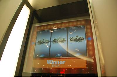 サイパンと同じく「ジャックポット」ゲームがありました。早速やってみると、またまた大当たり。なんとサンドキャッスルのカクテルショー無料券♪ でも、帰国日の今日はまったくもって意味の無い紙切れででもあり・・・複雑な心境。サンドキャッスルはグアムのほうがレベルが高いらしいのでちょっと気になりましたが、とりあえず断念。 |