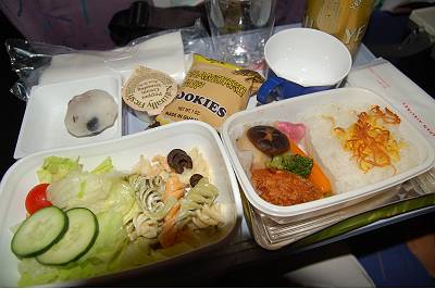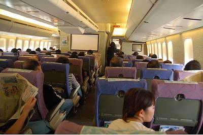 飛行機慣れしたサルきち、完全に余裕がもてるようになりました。音楽を聴きながらコンソメスープを飲んでます。^^ (以前はひーひー泣いて大変だったので・・・)