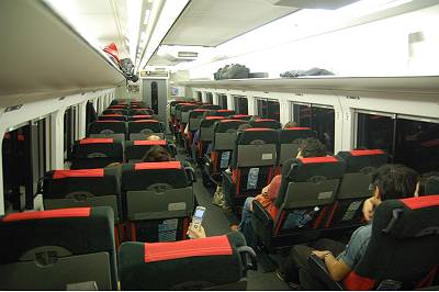 内装が以前と異なっていたのにちょっとビックリ。以前の荷物棚は飛行機と同じような形状だったのですが、今は普通の「棚」です。^^; |
