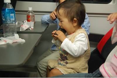 日本に帰ってきたのを実感しているのか、おにぎりをほお張るぽんたごん。良く食べます・・・。