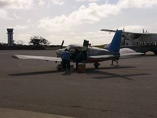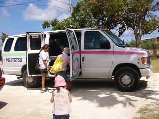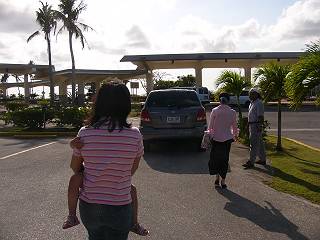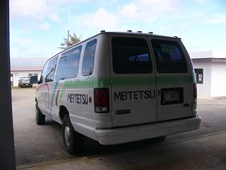 程なくして迎えが来ました。先に女性が一人乗っており、一緒の飛行機でテニアンに向かう様子。 |