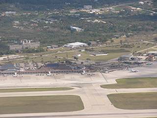 飛び上がるとあっという間に旋回、Uターンし、サイパン空港を上から見下ろすことができました。 |