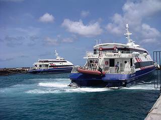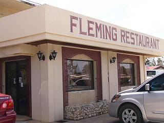 フェリー(高速船)で到着する人達と一緒に島内観光をするとのことで、フレミングレストランでしばしの休憩。