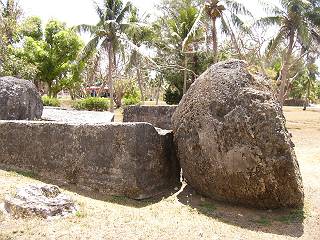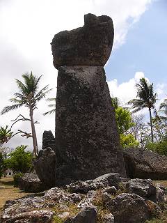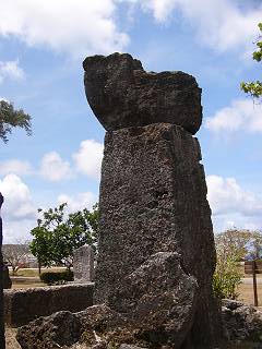 写真のものは唯一立っていたものですが、上の部分(キャップストーン)が後ろに崩れてしまっています。 |