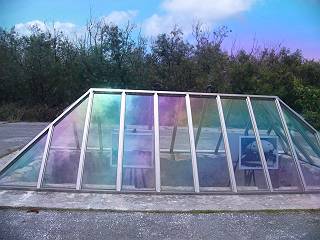 ちょっと分かりにくいですが、左真ん中に防空壕の入り口があります。防空壕は今でも台風の時などに避難用に使用されているそうです。 |