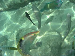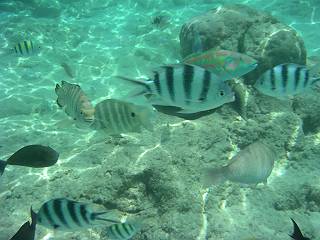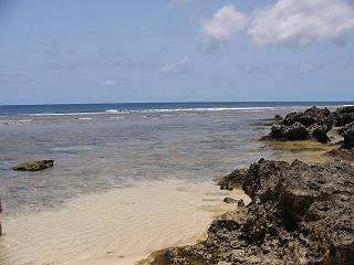 サイパン島のように遠浅ではなく、ちょっと入ると急に深くなっているので注意が必要です。あと、若干波があります。 |