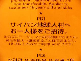 JACKPOTゲームをやったところ、「地球人村一人無料ご招待」チケットが当たってしまいました。聞いたところ、帰国日の午前中参加も可能とのことなので、明日の午前中参加決定、家族追加分を支払って予約完了。 |