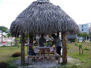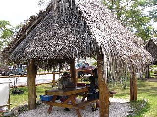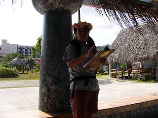 この日は、ヤシの葉細工・ココナッツオイル作り・ビーズ細工(ブレスレット&リング)作り・バナナペインティング・マーマー(花冠)作り・ウクレレ教室・貝がら細工・チャモロ料理教室が開催されていました。別途有料ですが、カロリニアンカヌーの体験も行われていました。