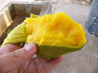 先程もらったマンゴーも食べてみました。皮をむくだけで簡単に食べれます。(食べるというより、しゃぶりつくといった感じでしょうか・・・)