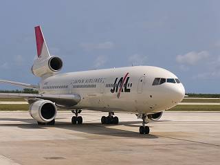 外を見ていたら、成田からのDC-10(JA8542)が着陸してきました。ついうっとりと見てしまいます・・・。 |