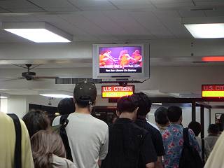 荷物を引き取って税関に進みます。(ほんの2〜3分です) 外に出るとお迎えの人たちが沢山います。 今回は往路のみ送迎をお願いしておいたので、ツアーバスに乗車。 待つこと20分、バスは出発しました。 やはりタクシーの方が楽だと思います。(最初に乗った人達は40分位待たされたようです)