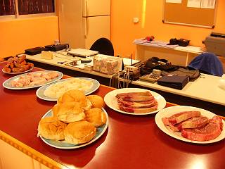 幻のSDR名物、「SDRバーガー」の調理中です。 |