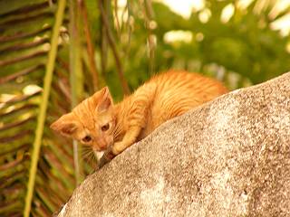 そんな賑わいを覗き見する子ネコが一匹。 |