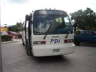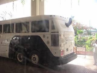 PDIプレジャーステーションのツアー出発時間が8:30の為、早々に支度をしてロビーに着いたときにはすでに8:25。案の定、着いてすぐにバスが来ました。