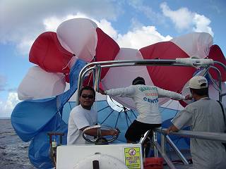さて、後ろではパラセイリングの準備をしています。見ているだけでも大変な作業です。 |