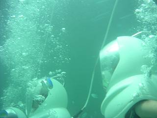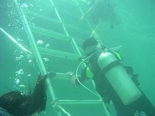 ハシゴを伝って下に降りていきますが、降りていくまでに水圧がどんどん変わる為、適せん耳抜きをする必要があります。 |
