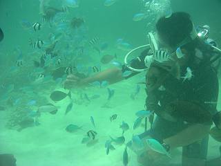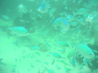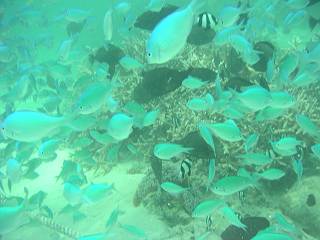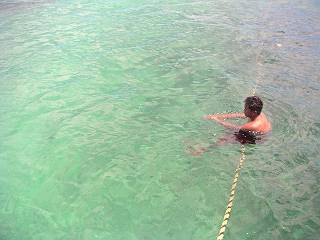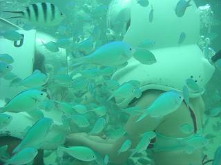 時間があるので、先にシュノーケルをすることに。中には沢山の魚がいました。 |