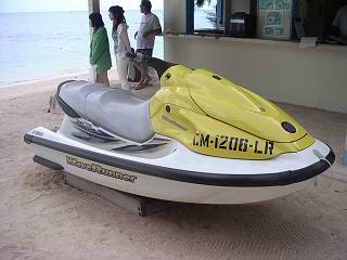 マリンジェットが近づいてきました。あれでこの海を自由に駆け回れたら相当楽しいでしょう・・・。いつも思ってしまいます。 |