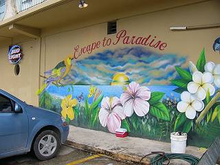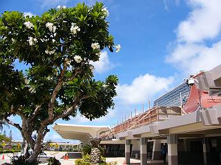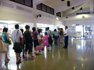 管理人はサイパンに到着してこの出口を出たとき、「サイパンに来た〜♪」と思ったりします。当然ながらこの時間は到着便は無く、とても静かです。 |