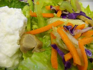 こちらはサラダ。サラダはドレッシングではなく、塩をかけて食べるのが好きです。 |