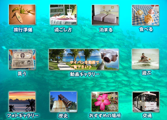 日本から飛行機で約3時間半で行ける、南の島「サイパン」の情報ページです。ここでは、サイパンで楽しむ為の情報をカテゴリー別に掲載しています。 |