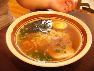 | お手ごろメニューその@ ラーメン $6 日本のものと味はさほど変わりません。このとき3才のサルきち(娘)もしっかりと食べていましたので・・・。 |