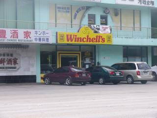 | ウィンチェルズはグランドホテルのほぼ前に位置します。 24時間営業なので、朝食やちょっとおなかがすいたときに重宝します。 (写真が少し前のものなのですが、隣のキンホー中華料理は現在「フクリンモン」に名前が変わっています。) |