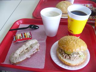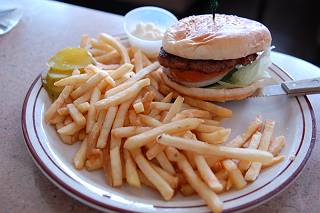 管理人がどうしても頼みたくて頼んだハンバーガーです。これもやはり「ポテトてんこ盛り」。おなかいっぱいになります!(間違いなく・・・) |