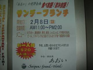 | グランドホテル内に貼りだされているサンデーブランチの案内。 月2〜3回、日曜日に実施されています。 グランドホテルのホームページにその月の実施日が掲載されています。 |