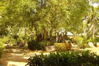 | 窓からは庭園を見ることができます。なぜか竹が生えているんです・・・。 | ||