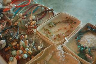 店の中央にはこのようなオブジェが。上から水が出てきています。オーナーの趣味なのかもしれません。 |