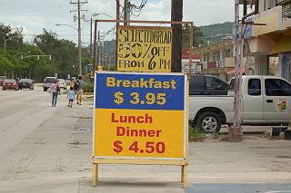 サイパンでは珍しいファミリーレストランですが、場所はススペ地区、グランドホテルから近いところに位置します。(シュガードックから道路を挟んで反対側ですが、ちょっと見えにくいです) 遠めに見ると普通のアパート?に見えてしまいます。 |