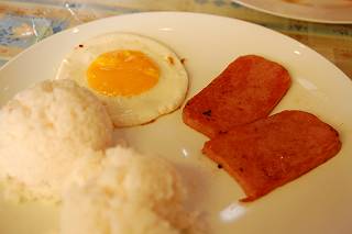 こちらは「スパム&エッグセット」。ご飯が少量に見えますが、結構量があります。 |